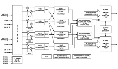 - 80 MSPS宽带输入(14位线性加上3位RSSI)