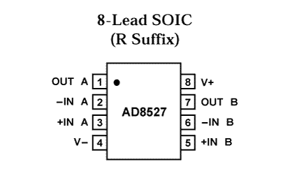 AD8527: 低电压、高压摆率、低噪声、7 MHz轨到轨运算放大器(双路)