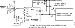 AD8599运算放大器用作4通道、10位ADC AD7995的超低失真驱动器