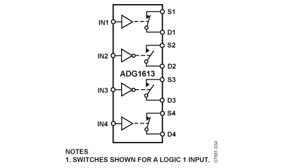 ADG1613: 1 Ω Typical On Resistance, ±5 V, +12 V, +5 V, and +3.3 V Quad SPST Switches