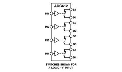 The ADG611, ADG612 and ADG613 are monolithic CMOS devices containing four independently selectable switches. These switches offer ultra-low charge injection of 1pC and leakage currents of 100pA at +25oC.