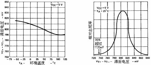 阈值电压和滞后电压与电源电压的关系输出电压与输入电压的关系