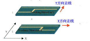 相邻两层间的走线必须遵循垂直走线的原则,否则会造成线间的串扰,增加EMI辐射,如下图: